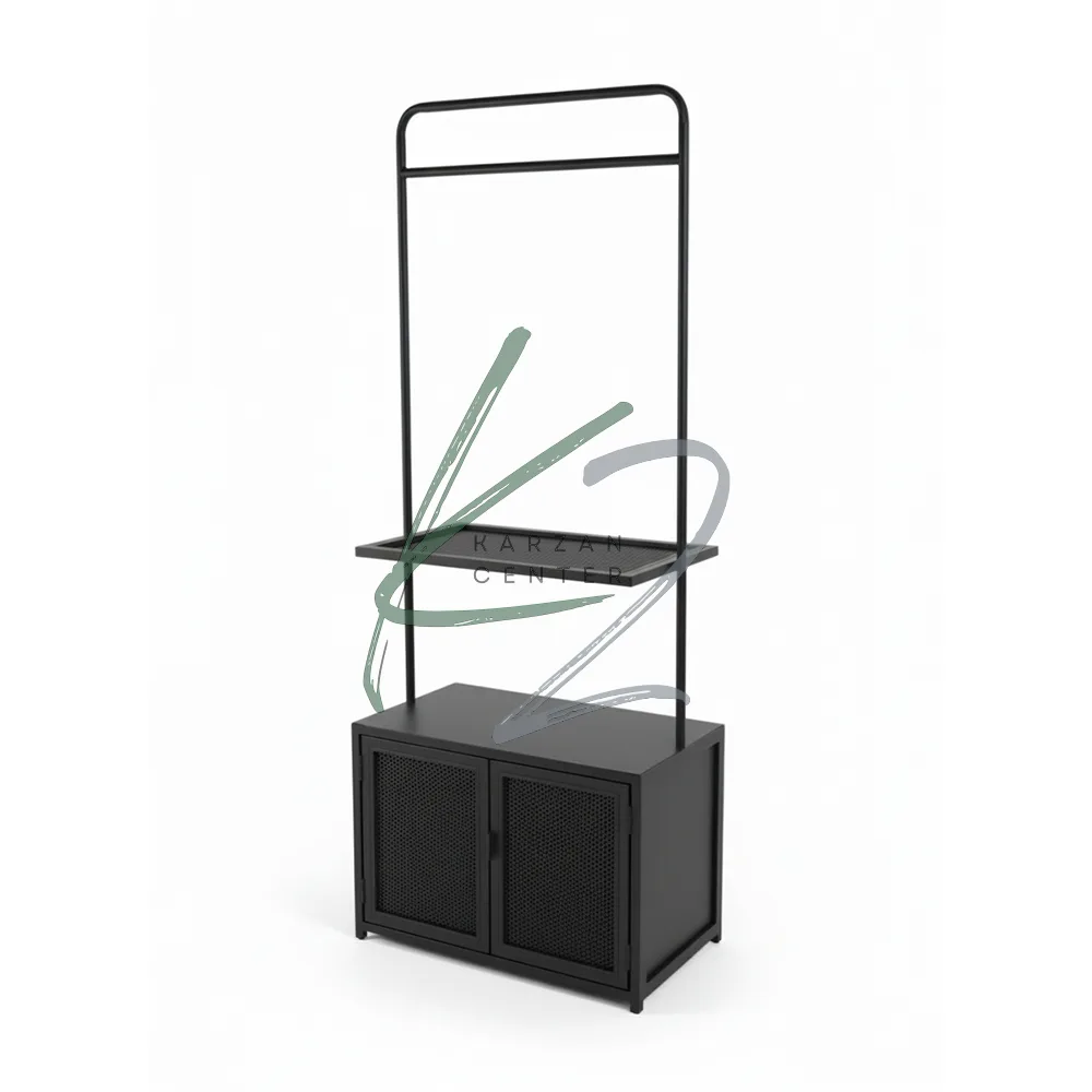 - طراحی ۳ در ۱ (باکس، شلف و آویز): این محصول فقط یک رگال ساده نیست. شما یک کمد دربدار با بافت توری برای کفش یا کیف، یک شلف میانی برای اکسسوری و عطر، و یک رگال عریض برای آویختن لباسها در اختیار دارید.